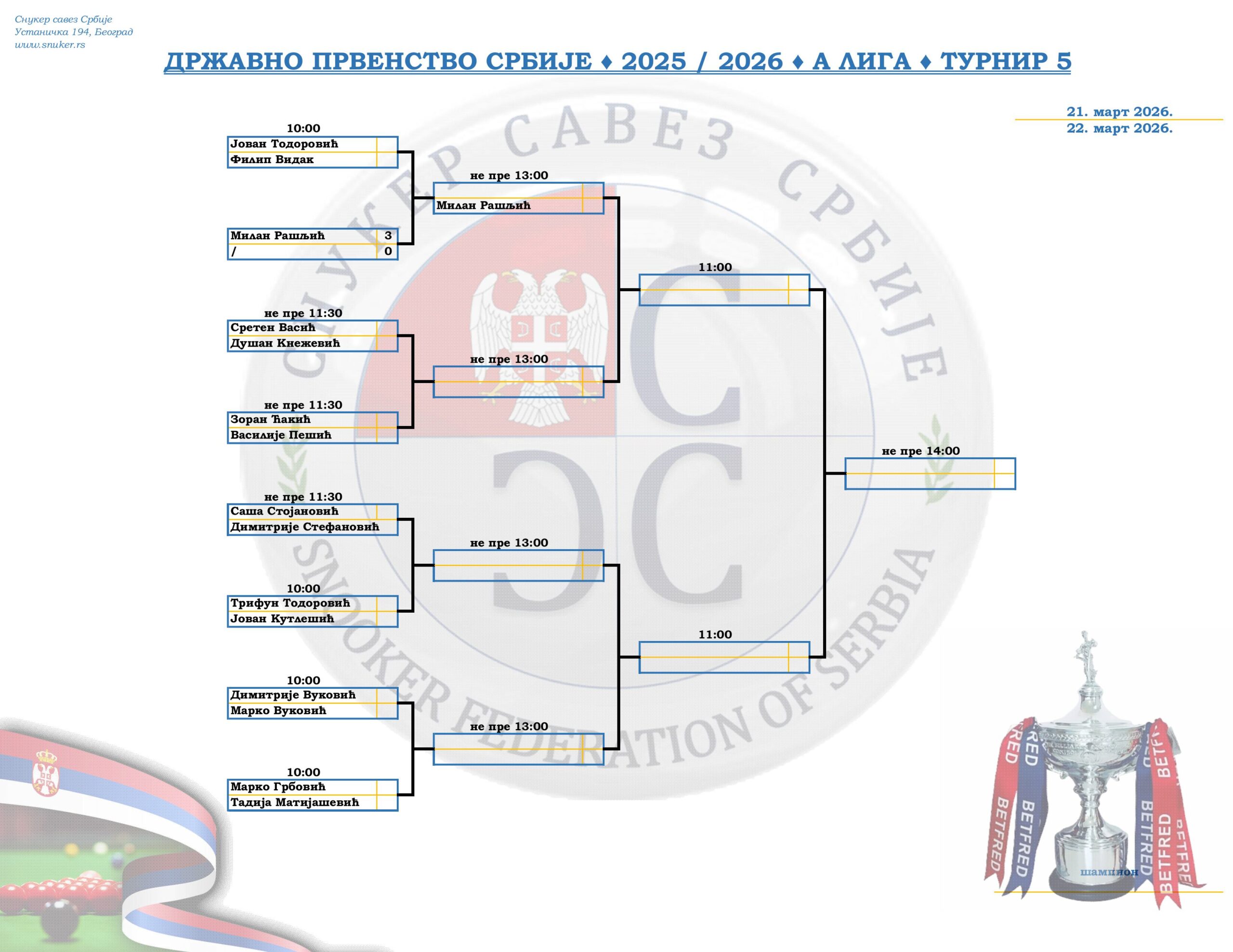 Државно првенство – A лига 5Од: dusan / 19. март 2026. У наставку се налази распоред такмичара за државно првенство у категорији сениора.